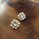 Bold and elegant, these huge statement studs are crafted from copper and lavishly finished with 21-karat gold plating. Accented with luminous mother of pearl, they add a striking yet refined touch—perfect for making an effortless statement at festive and special occasions.